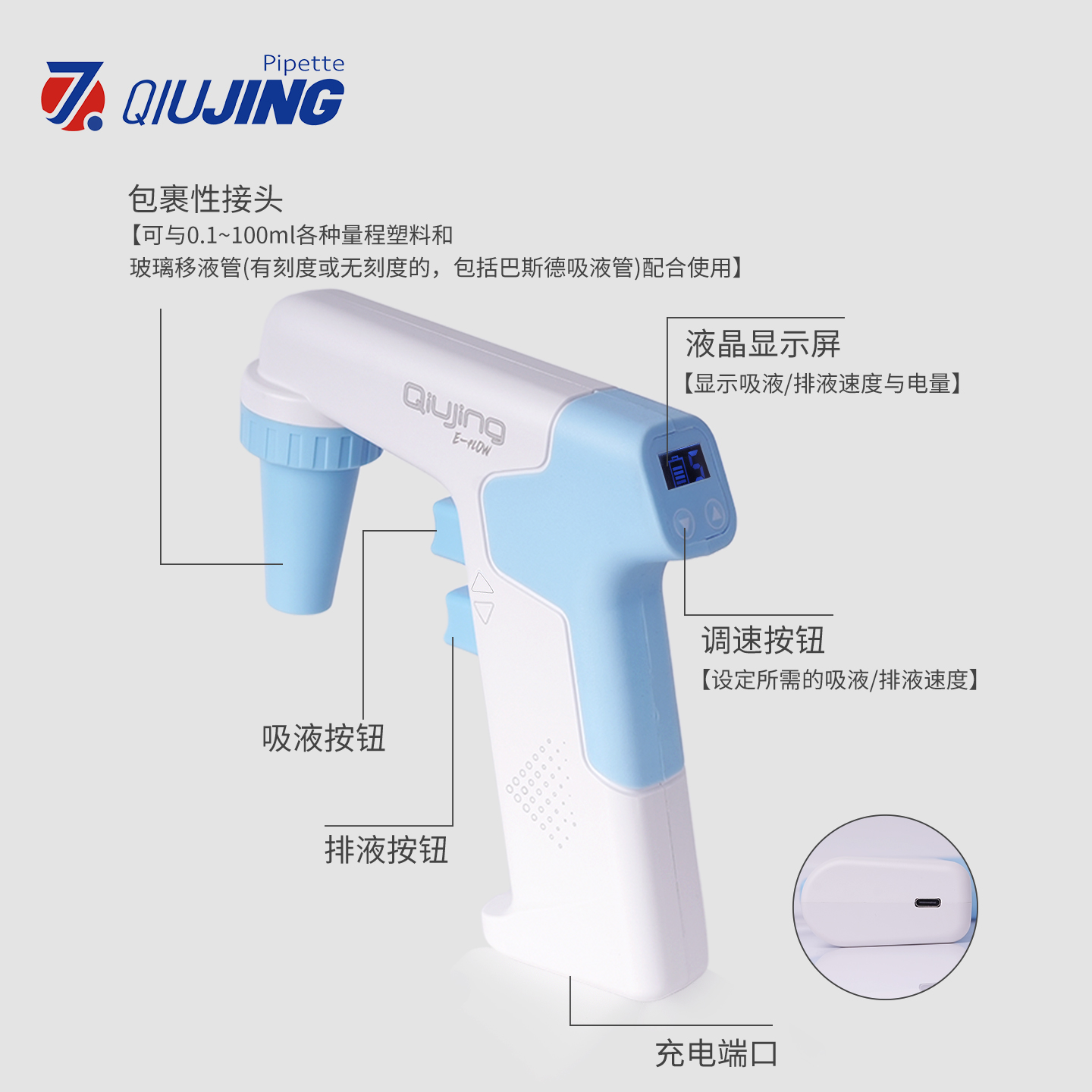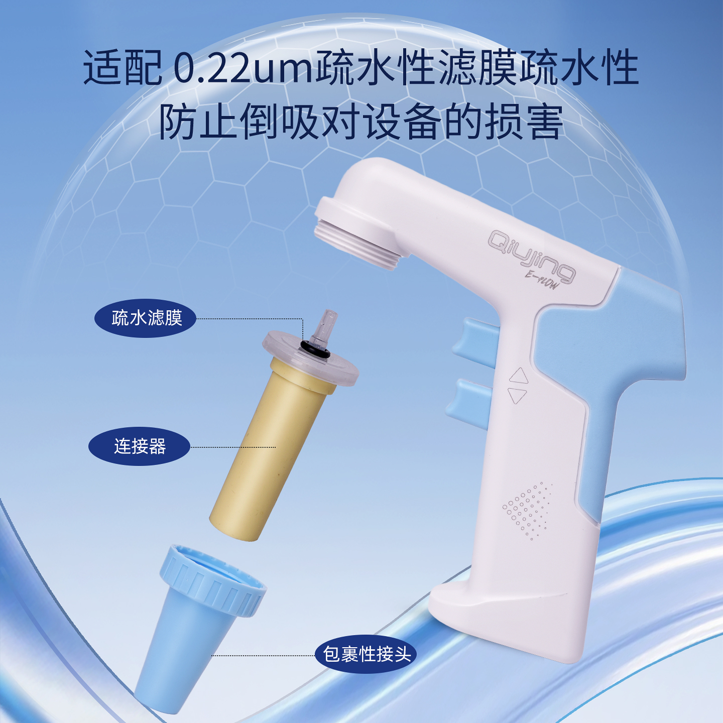 求精电动大容量移液器专为高通量实验室设计,提供0.1mL~100mL大体积精准移液,误差≤±0.5%,符合ISO 8655标准。其智能电动驱动支持调速分液、连续分液,搭配LCD屏显和轻量化机身(仅300g),显著提升操作效率并减少疲劳。适配多种吸头,兼容腐蚀性及高黏度液体,且支持整机消毒与快充续航。适配 0.22um疏水性滤膜疏水性,防止倒吸对设备的损害和过载保护,广泛应用于生物制药、工业质检及环境监测等领域,是安全、高效的大容量移液解决方案。